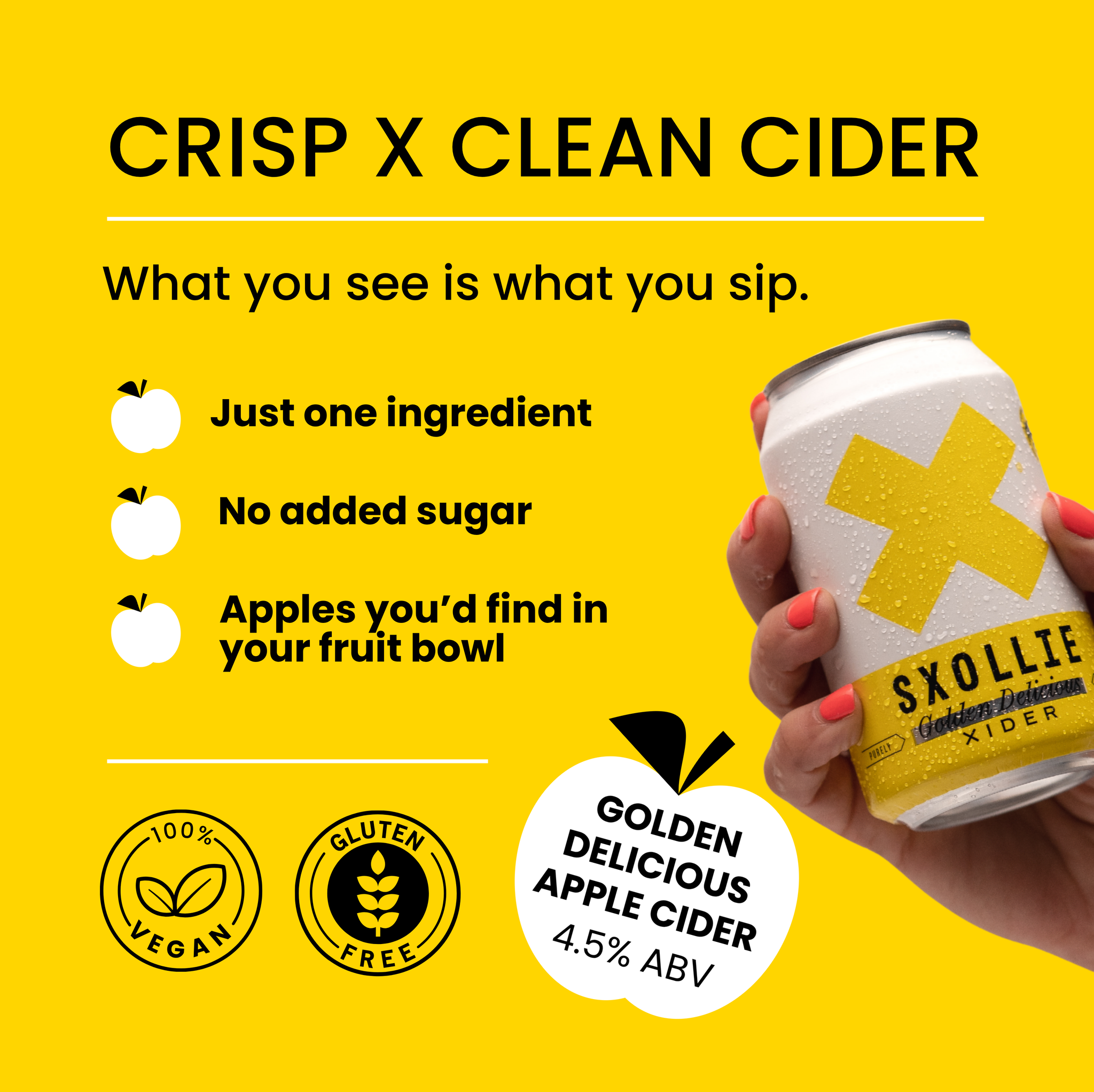 One ingredient. No added sugar. A crisp clean cider made purely from apples you’d find in your fruit bowl.
