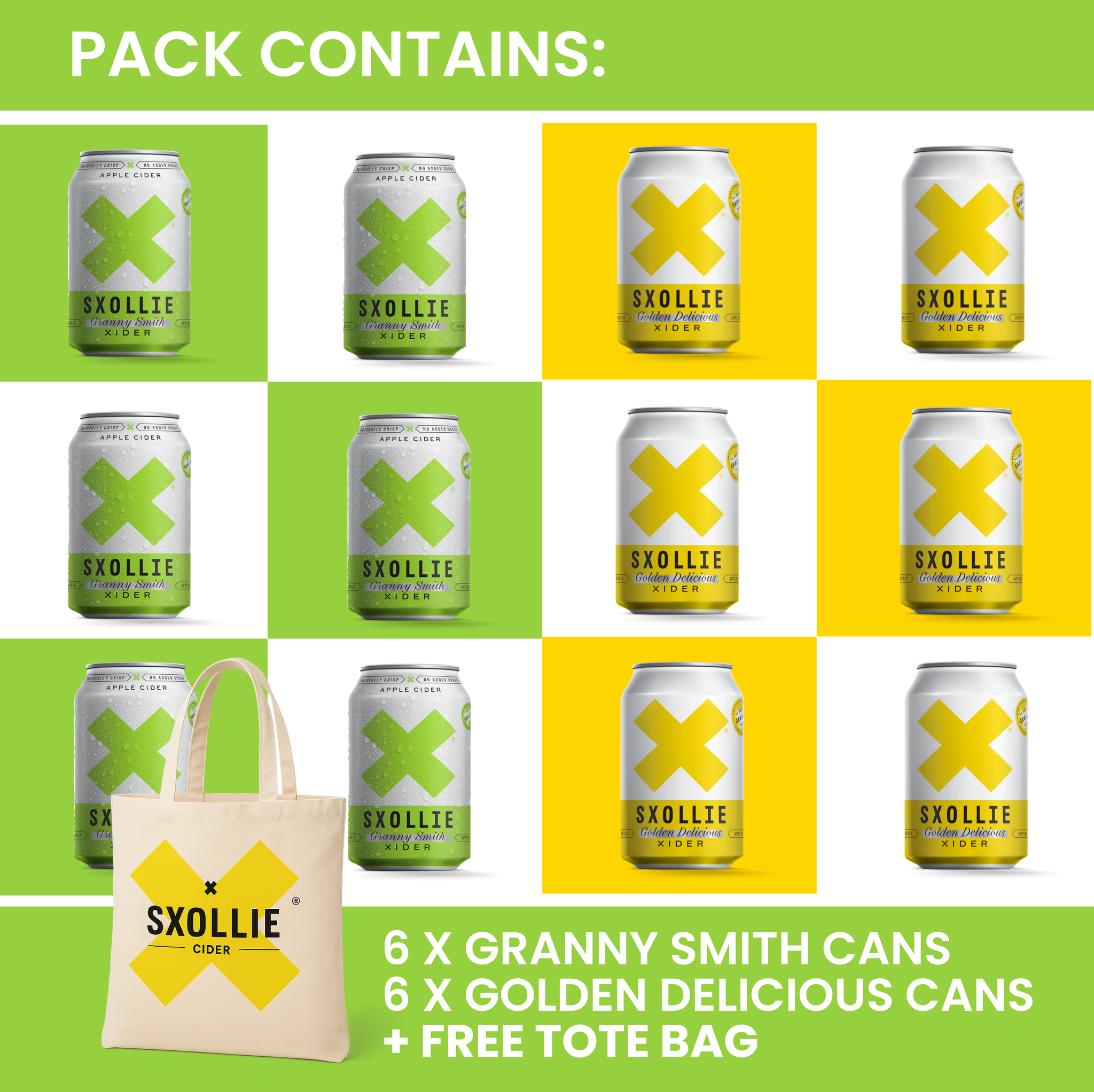 Meet the best way to get to know SXOLLIE! A mixed case of our two icons. Half crisp, refreshing Granny Smith. Half smooth, mellow Golden Delicious.